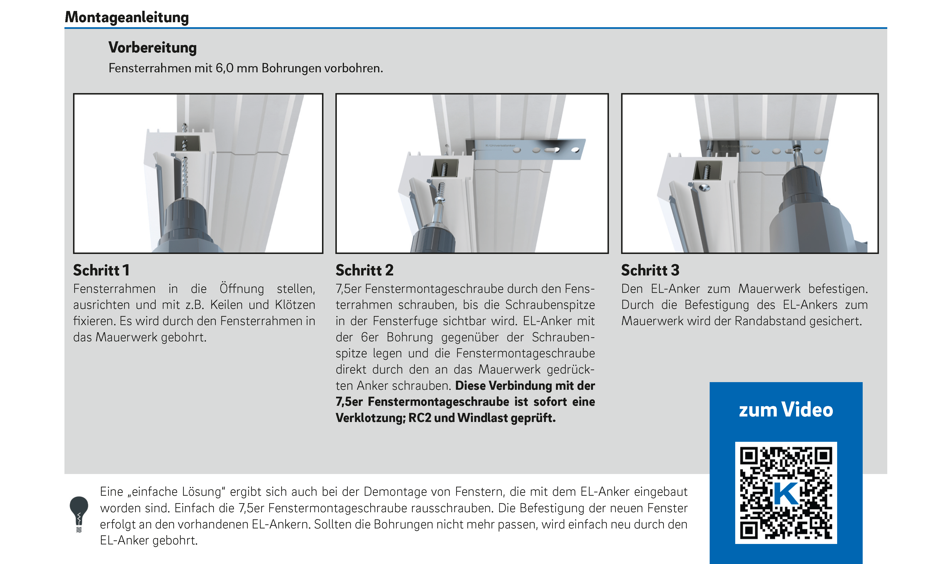 - die direkte Verschraubung durch das Fenster in den Anker ist eine geprüfte Verklotzung