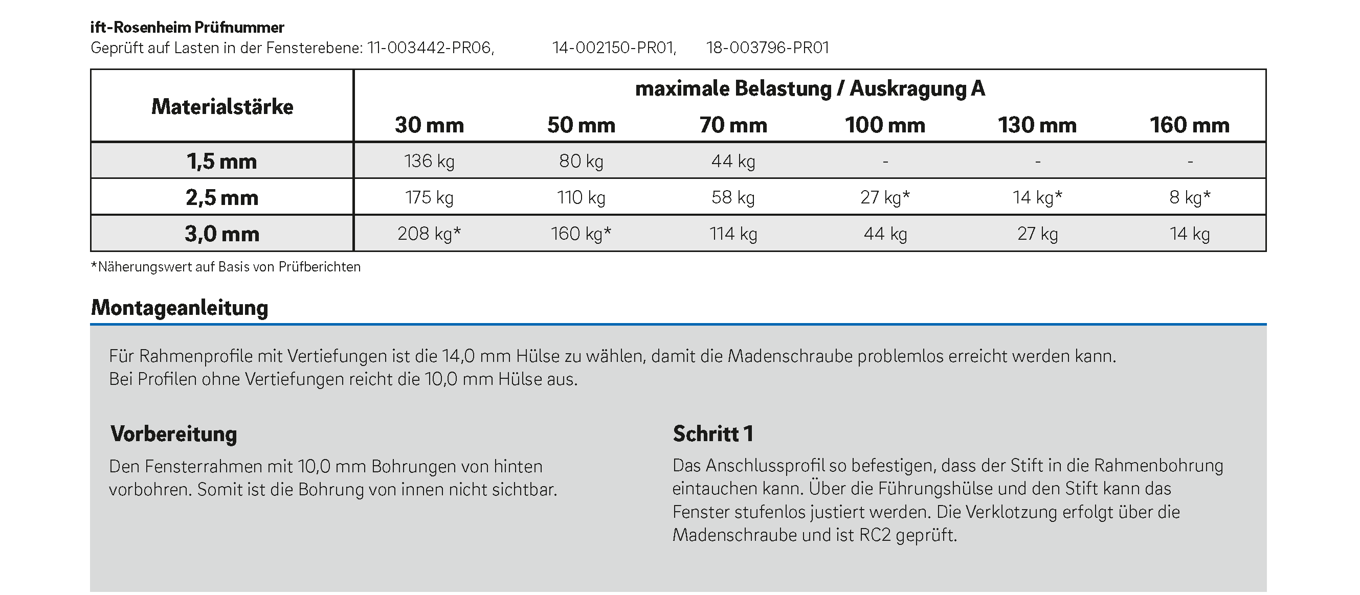 - maximale Belastung vom ift-Rosenheim geprüft