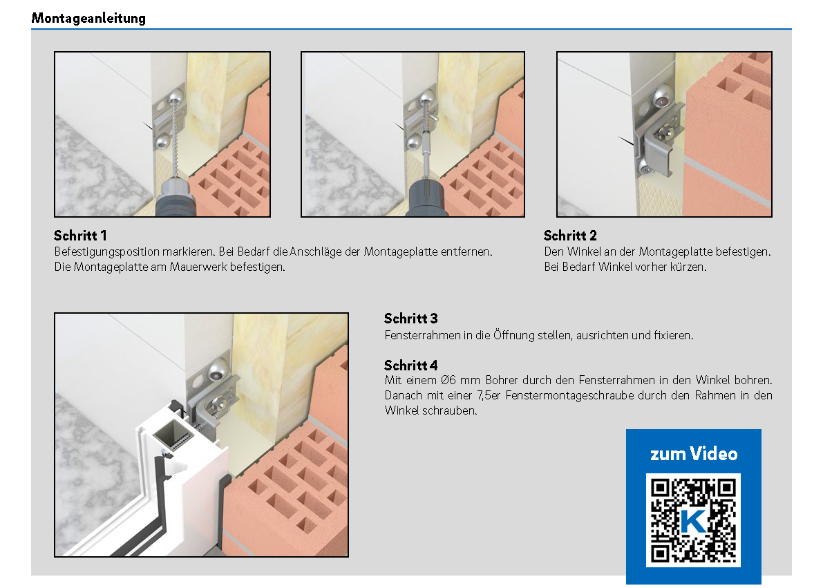 - direkte Verschraubung durch das Fenster in den Winkel ist sofort eine Verklotzung
