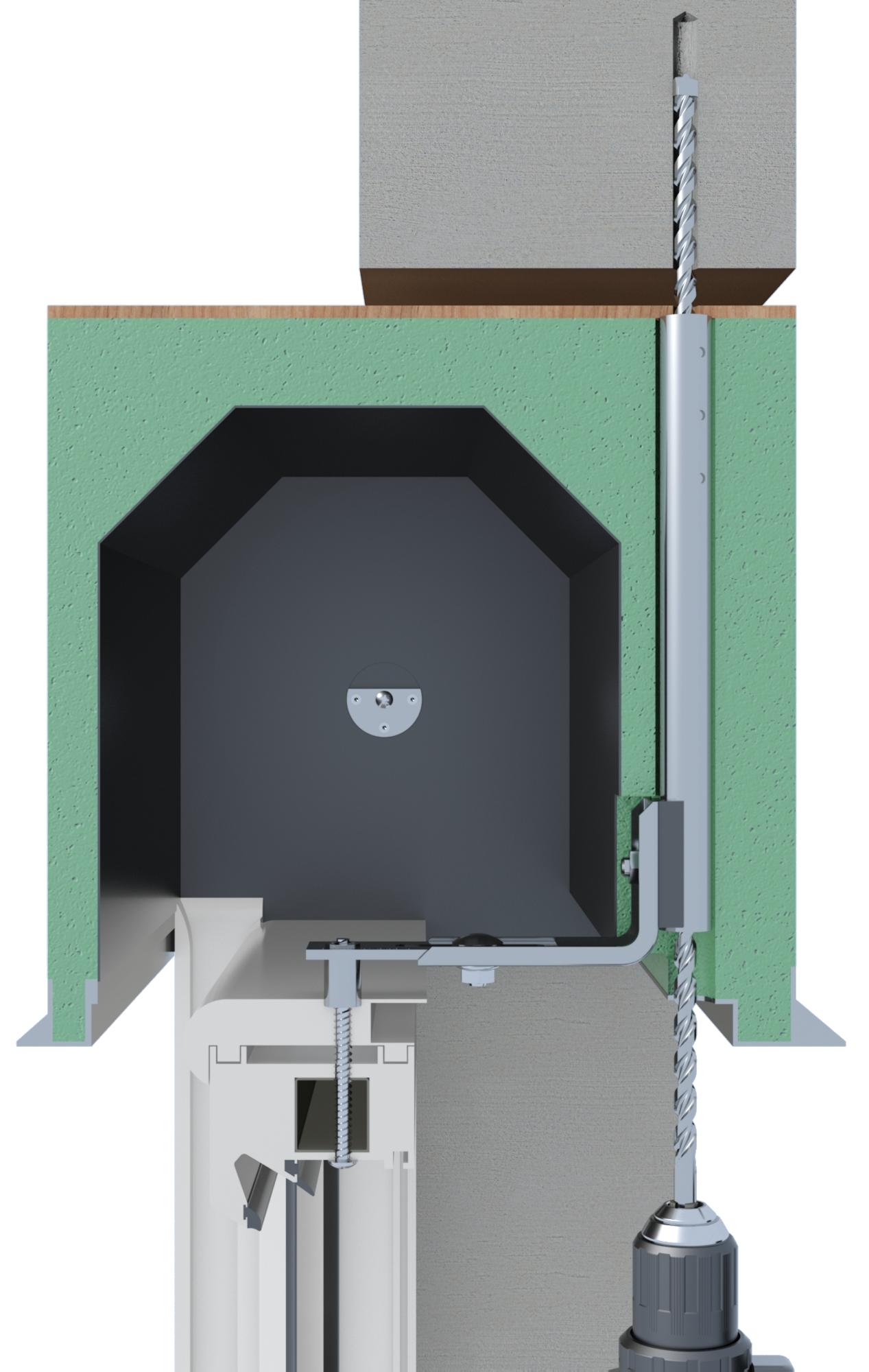 DS - Direktschraube␍1x DS-Rohr Ø21,3x245, 1x DS-Winkel-65x125x3,0␍1x Schlossschraube M8x16, 1x RK-Fest-Montageplatte␍2x Flanschmutter M8, 1x Rahmenschraube Ø11,5x180␍VE-Menge 5 Stückfür die einfache Fensterbefestigung oben im Rollladenkasten␍für alle Kastensysteme geeignet␍Freischneiden der Befestigungspositionen durch Bohren␍kann vom Kastenhersteller vormontiert werden␍überträgt Kräfte (Windlast, Flügel öffnen und schließen) direkt auf die Innenbetondecke oder den Sturz␍mit thermischer Trennung␍mit Fenstermontageschraube direkt zum Sturz befestigt