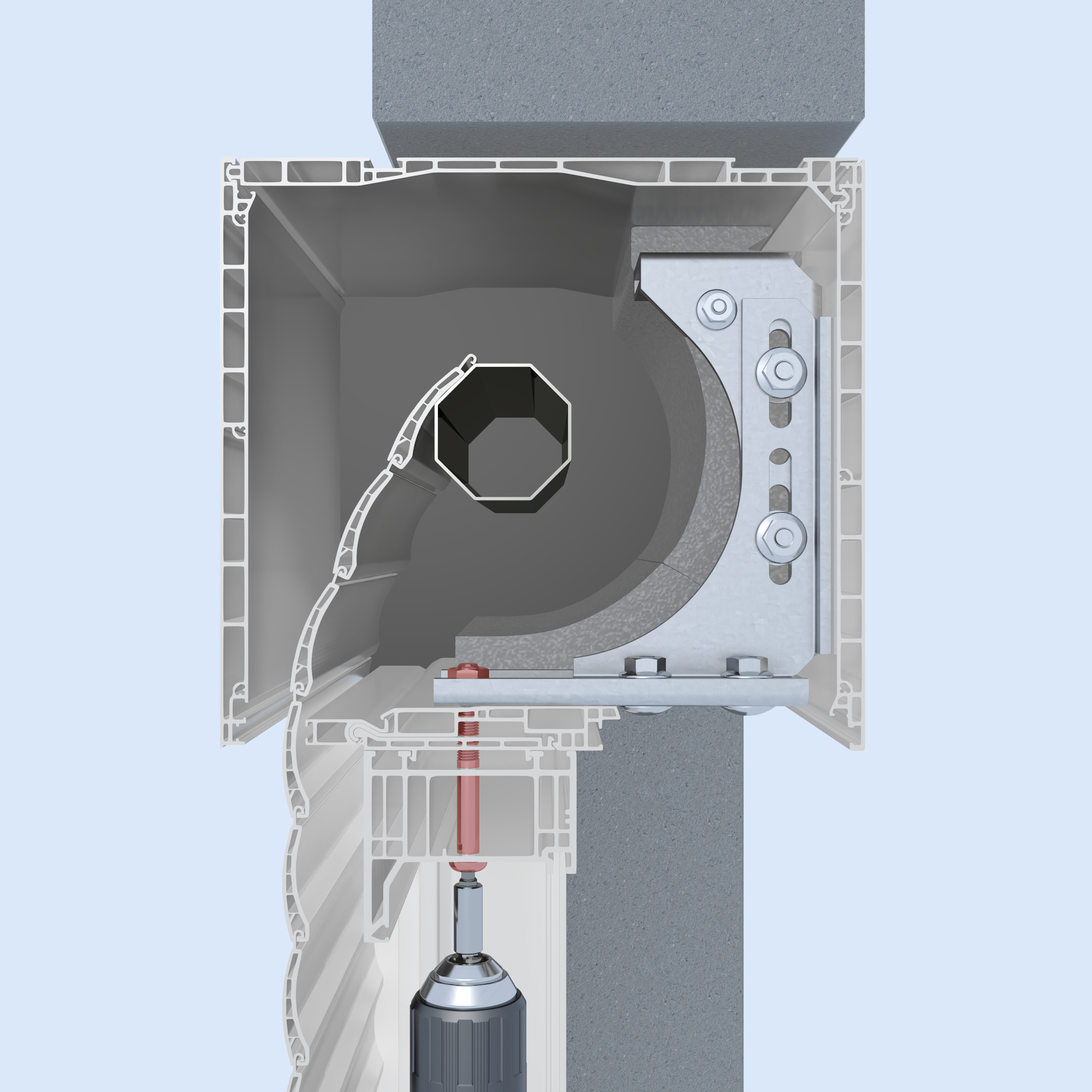 KOM - Kompakt␍1x Oberteil-134x68x4,0, 1x Unterteil-143x93x4,0␍VBW-55x38x27x2,5, 1x Schlossschraube M6x16␍1x Flanschmutter M6, 2x Schlossschraube M8x16␍4x Flanschmutter M8, 1x Linsenkopfschraube M8x80␍VE-Menge 10 Stücküberträgt Kräfte (Windlast, Flügel öffnen und schließen) direkt auf die Innenbetondecke oder den Sturz␍stufenlose Anpassung␍Fensterbefestigung nach Widerstandsklasse RC2