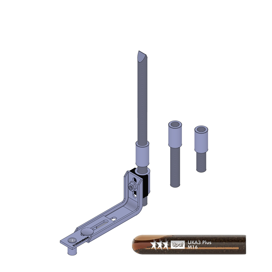 RP - Reaktionspatrone␍4x Gewindebolzen: 1x M16x200 mit Schaufel␍1x M16x100 mit Antrieb, 1x M16x100, 1x M16x60␍1x Reaktionspatrone M16␍3x Verbindungsmutter M16x40, 1x Verbindungselement␍VE-Menge 10 Stückeinfache Fensterbefestigung oben im Rollladenkasten␍überträgt Kräfte (Windlast, Flügel öffnen und schließen) direkt auf die Innenbetondecke oder den Sturz␍Freischneiden der Befestigungspositionen durch Bohren␍für alle Kastensysteme geeignet␍mit thermischer Trennung␍Einklebung mit Reaktionspatrone