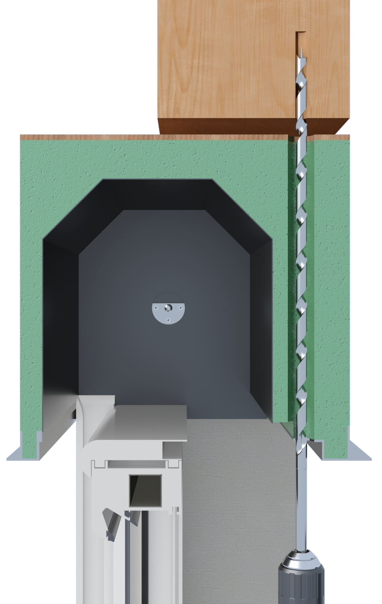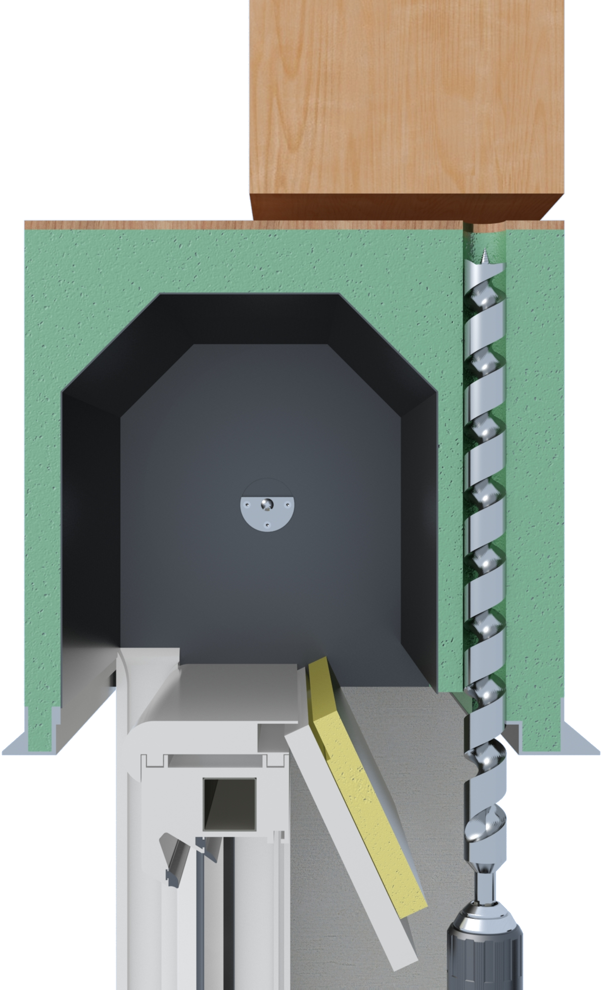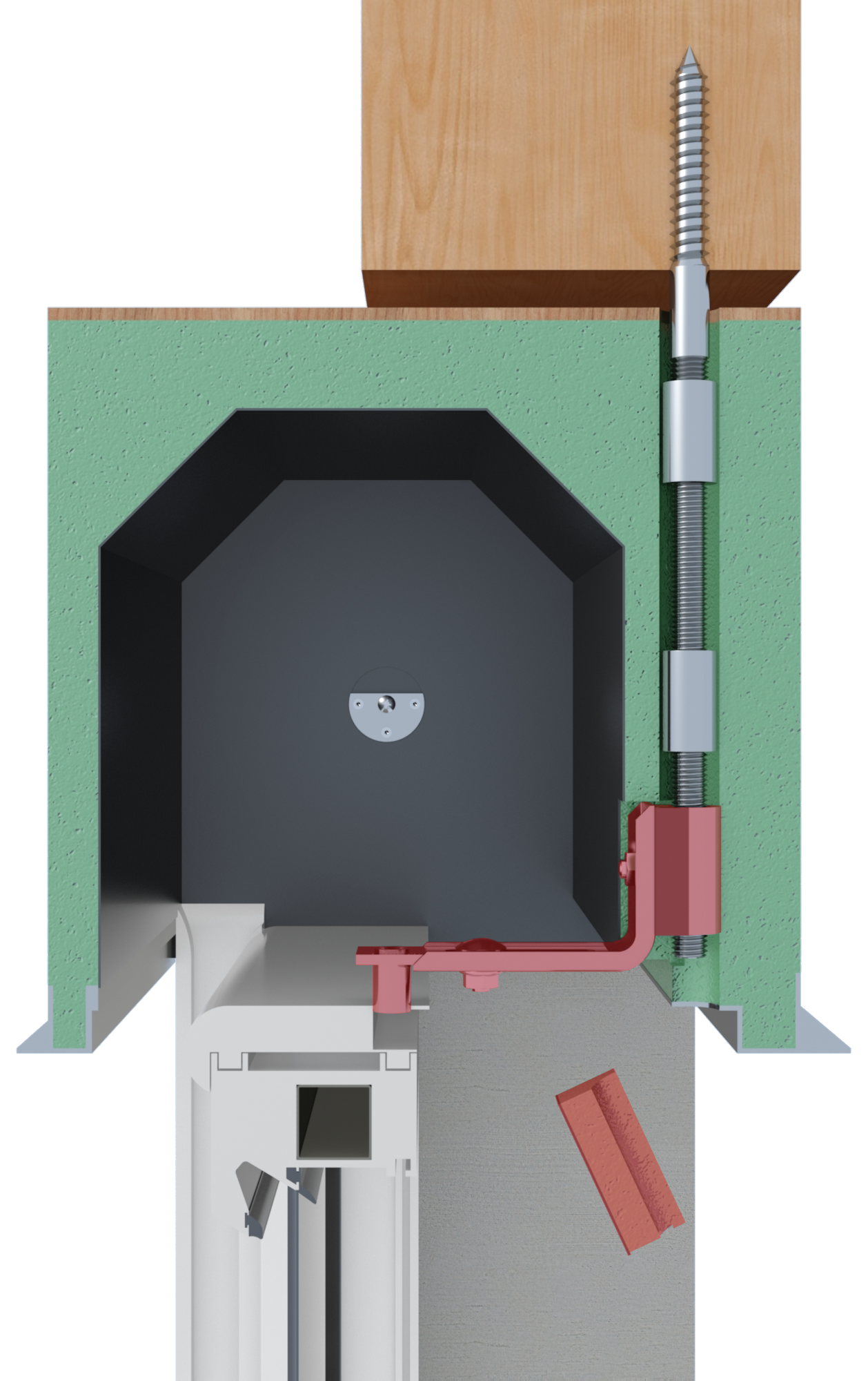 SS - Stockschraube␍2x Gewindebolzen: 1x M16x100 mit Antrieb␍1x M16x100, 1x Stockschraube M16x150␍2x Verbindungsmutter M16x40␍1x Verbindungselement␍VE-Menge 5 Stückeinfache Fensterbefestigung oben im Rollladenkasten␍überträgt Kräfte (Windlast, Flügel öffnen und schließen) direkt auf den Sturzbalken␍Freischneiden der Befestigungspositionen durch Bohren␍für alle Kastensysteme geeignet␍mit thermischer Trennung␍für die Befestigung am Holzsturz